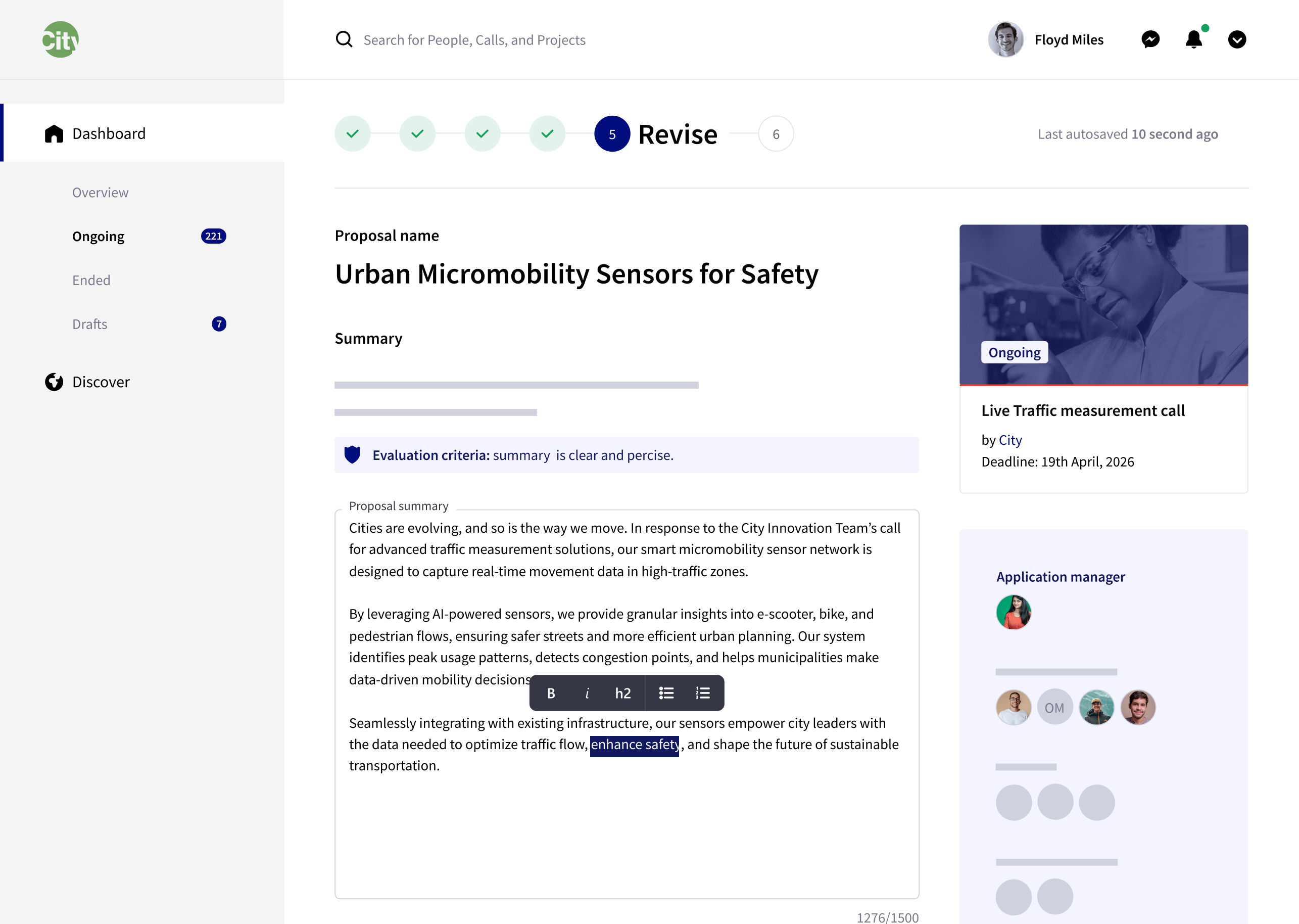 Powered by Grantful technology, TestInCity is designed for collaboration, enabling your team to plan, manage, and report on innovation programs seamlessly. Streamline your application processes, exchange knowledge with city innovation teams worldwide, and focus on impact with a platform that supports you every step of the way.